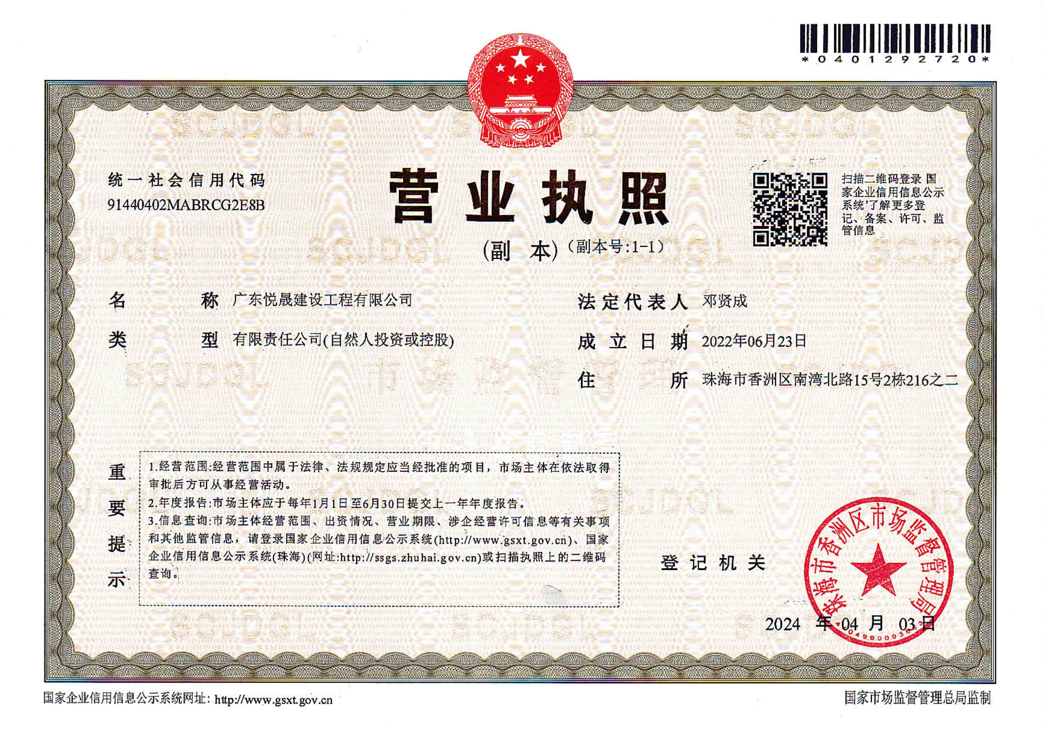 廣東悅晟建設工程有限公司及其下屬企業珠海市浩振裝飾設計工程有限公司(法人原珠海市宏博建筑裝飾設計工程有限公司創始人)是一家專業從事家居、別墅、樣板房、辦公、娛樂、酒店、會所等空間的設計和施工,擁有建筑裝修裝飾工程專業承包貳級資質。經過多年的經驗積 累及專業化的空間設計、施工,為廣大客戶精心打造了滿意的住宅、辦公和商業空間。憑借廣博的經驗、卓越的技術、創新的思維,幫助您實現設計、裝飾構想,以鮮活的視覺沖擊力為您演繹真實與想象的完美結合。